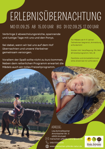 Wir bitten darum uns die Anmeldung für das jeweilige Erlebnis mit dem Pony per E-Mail, Fax oder Post an uns zurückzusenden. Danke!